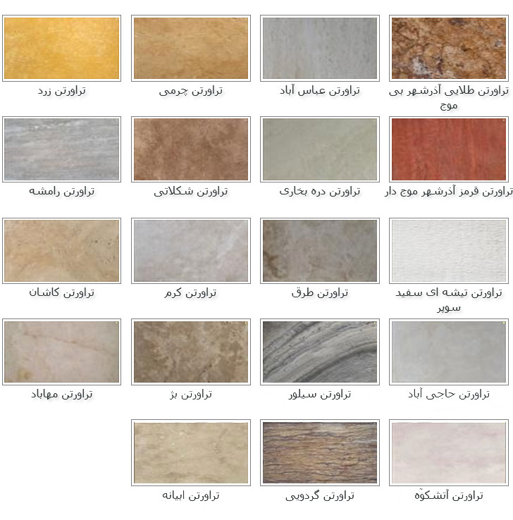 تراورتن از ته نشین شدن مواد براثر آب داغ یا آب سرد دربارها ایجادشده است. در حال حاضر 52 معدن فعال تراورتن در کشور موجود می باشد. تراورتن سنگي کلسیم دار است و ازنظر رنگ از سفید تا خاکستری، نقره ای، زرد، قرمز، قهوه ای تيره موجود می باشد. سطح تراورتن مناسب جهت بتونه و پُرنمودن، پوليش وآنتيك نمودن می باشد. درعين حال در شرایط آب وهوایی گرم جهت مصارف خارجي می توان از این سنگ ها استفاده نمود.