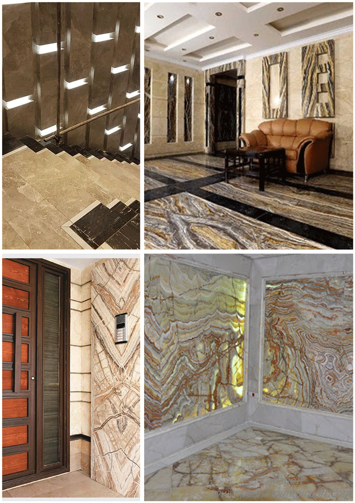 از این نوع سنگ ها به علت زیبایی خاصی که دارند، معمولاً در نما و طراحی های داخلی ساختمان ها مورداستفاده قرار می گیرند.