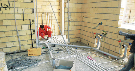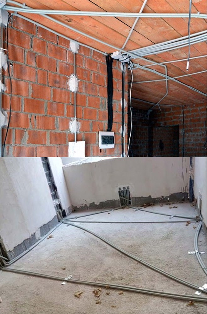 پس از دیوارچینی، اجرای تاسیسات مانند لوله کشی های گاز، آب و برق کشی انجام میشود و درصورت لزوم، لوله کشی آتش نشانی هم انجام میشود.