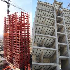 ب) اجرای اسکلت بتنی: درصورتیکه ساختمان موردنظر اسکلت بتنی باشد باید همزمان با آرماتوربندی فونداسیون، میلگردهای انتظارستون ها درفونداسیون پیش بینی گردد بعد ازاجرای فونداسیون با آرماتوربندی و قالب بندی ستون ها مرحله بتن ریزی ستون شروع خواهدشد که بعداز چندروز که ستون ها مقاومت خودرا بدست آوردند اقدام به آرماتوربندی پوترها و تیرها خواهدشد. قبلاً باید تیرچه آماده باشد و همزمان نسبت به تیرچه ریزی سقف اقدام نمایند درنهایت بتن ریزی سقف میباشد.