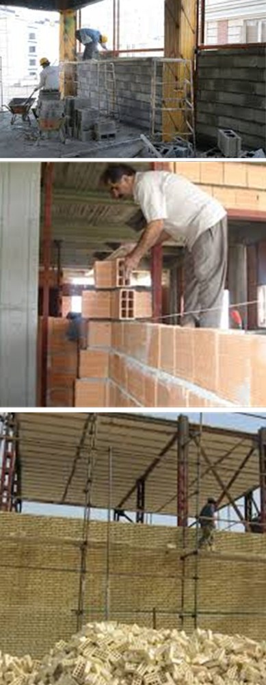 پس از تکمیل سقف، نوبت به دیوارچینی میرسد. معمولا دیوارچینی درایران با آجر ها انجام میشود. ولی دیوارچینی های مختلفی وجود دارد که یکی ازآنها دیوارهای پیش ساخته عایقکاری شده است. درپایان اجرای سقف و دیوارچینی، بتن پاشی سقف و درصورت لزوم دیوارها صورت میگیرد.